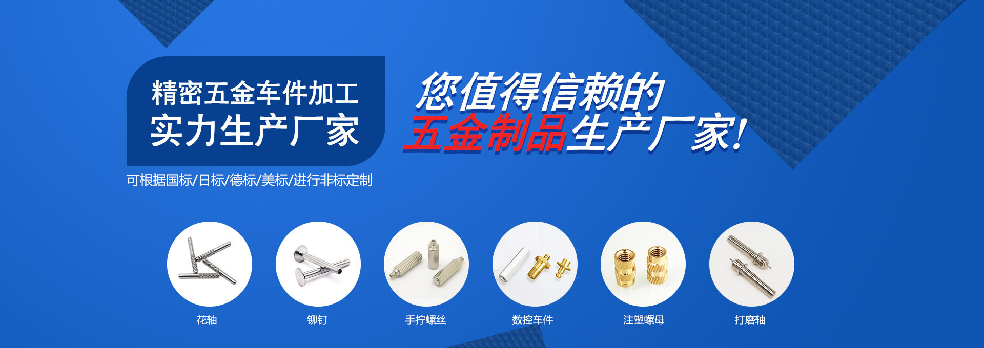 公司主營業務為精密五金CNC車件、CNC精雕件、非標螺母、螺絲、鉚釘、銷軸類加工。